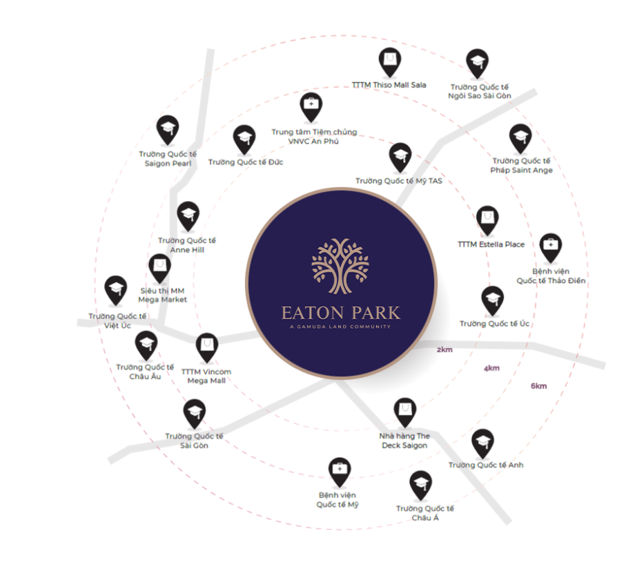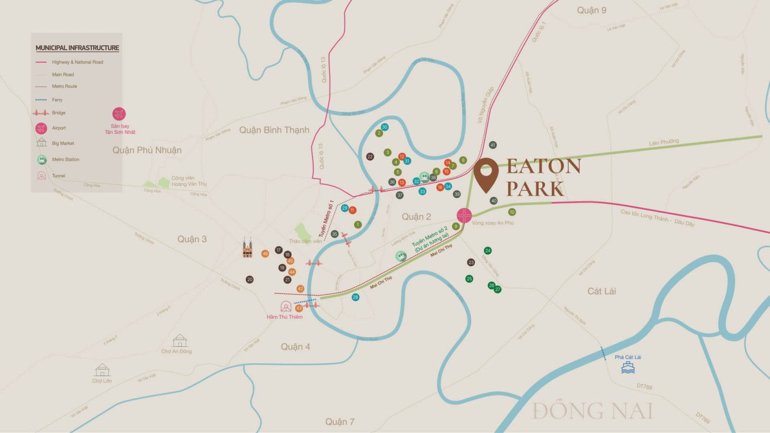 An Phú, Thảo Điền, Sala 등 고가치 지역에 둘러싸여 Eaton Park는 향후 경제 성장 중심에 자리합니다.