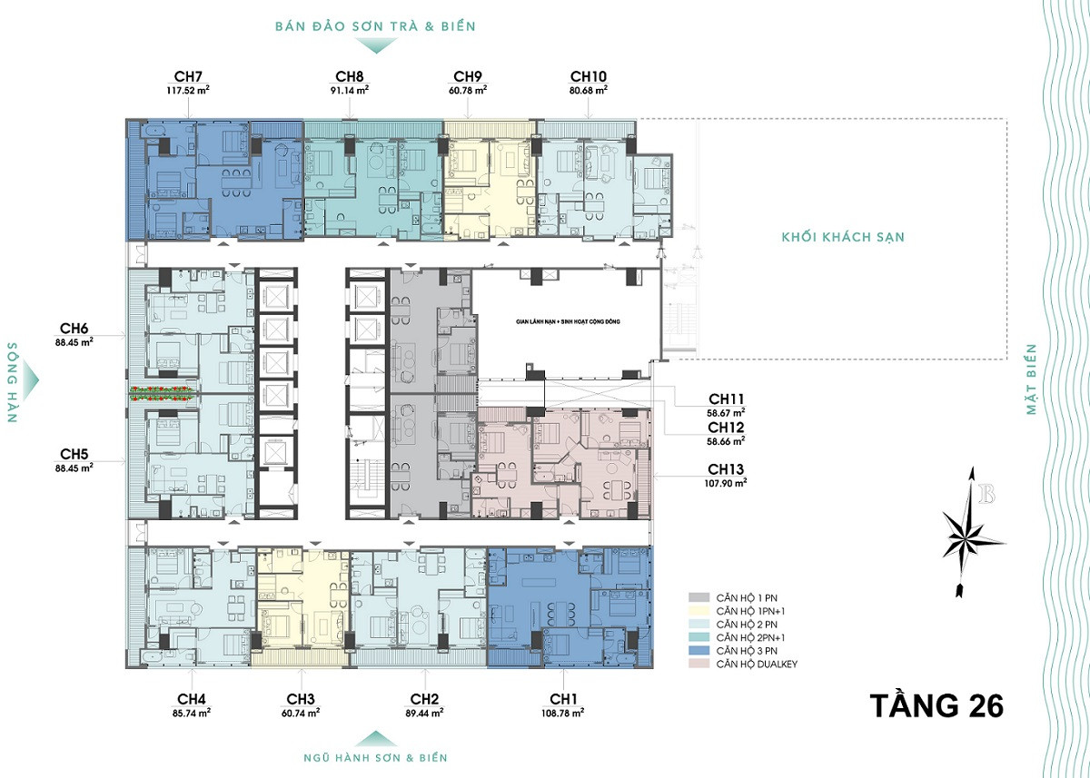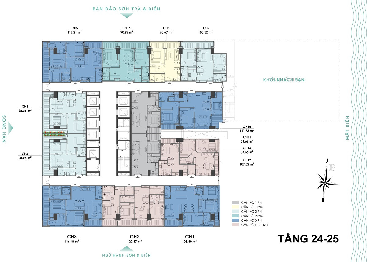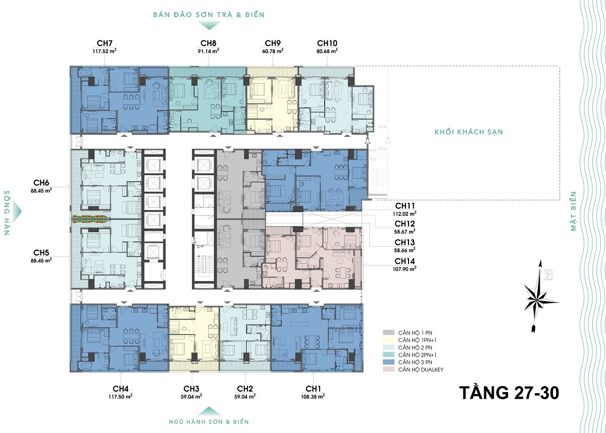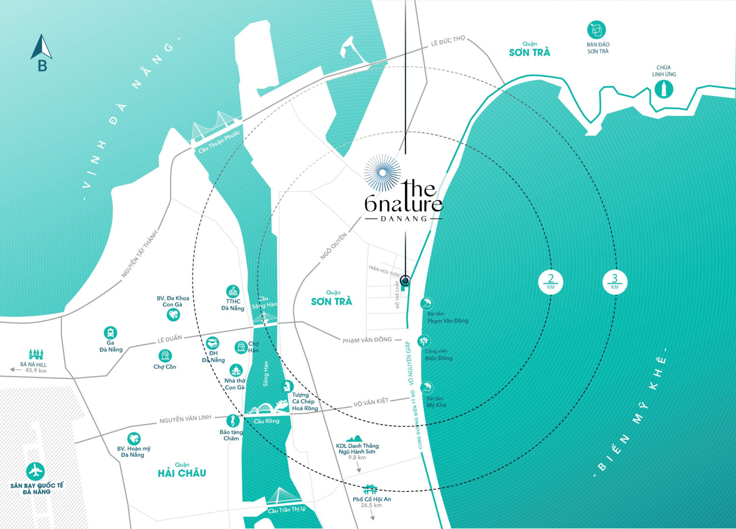 미케비치 3분, 한강대교 5분, 다낭 국제공항 15분, 선짜반도 28분, 호이안 올드타운 40분 거리.