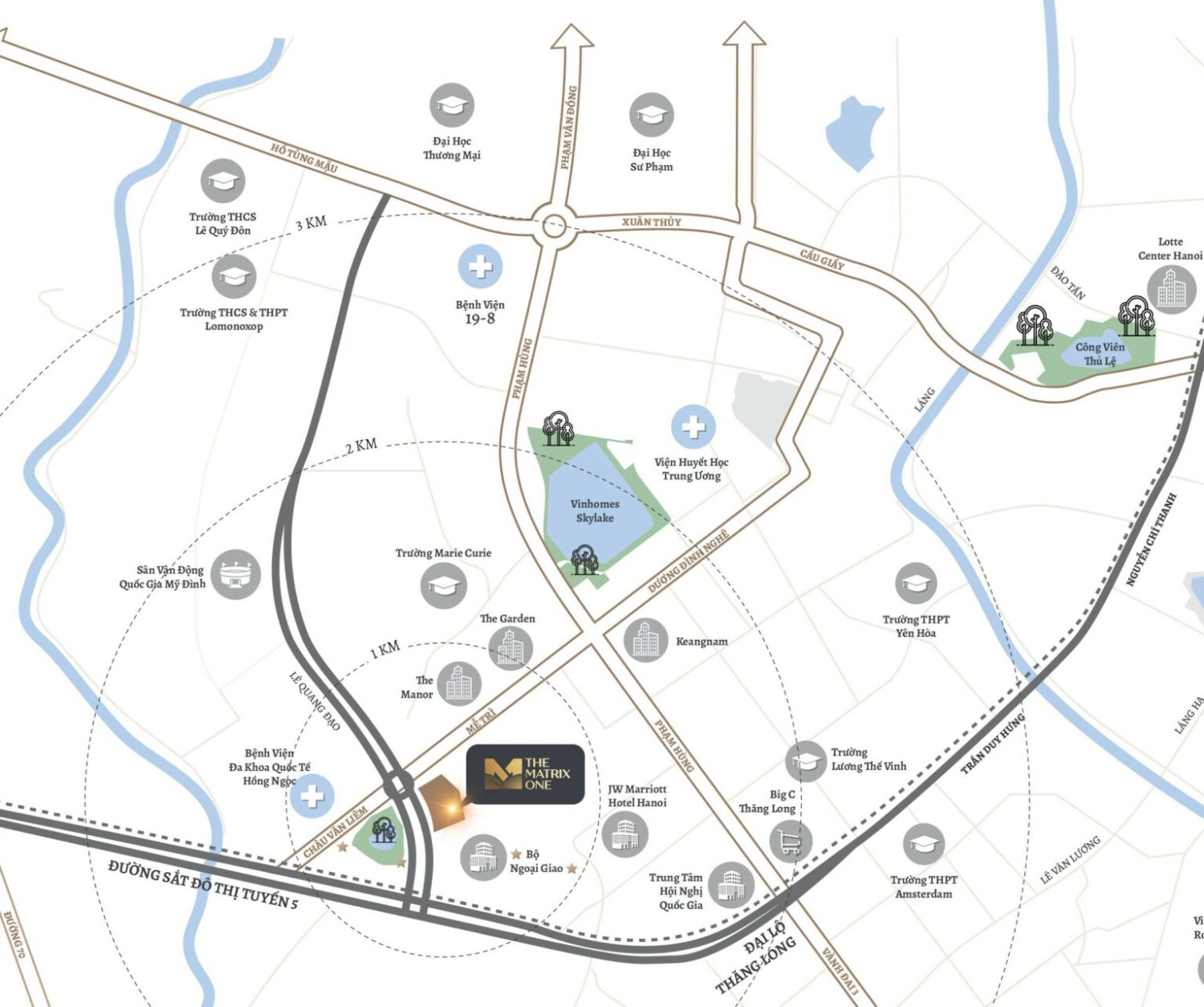 The Matrix One은 MIK 그룹의 혁신적 비전과 정성을 바탕으로, 마음에서 출발한 가치로 높은 품격의 주거 환경을 구축하는 프로젝트입니다. 2단계는 더 넓은 녹지, 깨끗한 수공간, 그리고 대규모 호수공원을 갖추어 차별화됩니다. 입주자는 미딘 경기장의 파노라마 전망과 화려한 불꽃놀이를 감상할 수 있으며, 이는 비교할 수 없는 하이엔드 라이프스타일을 상징합니다.