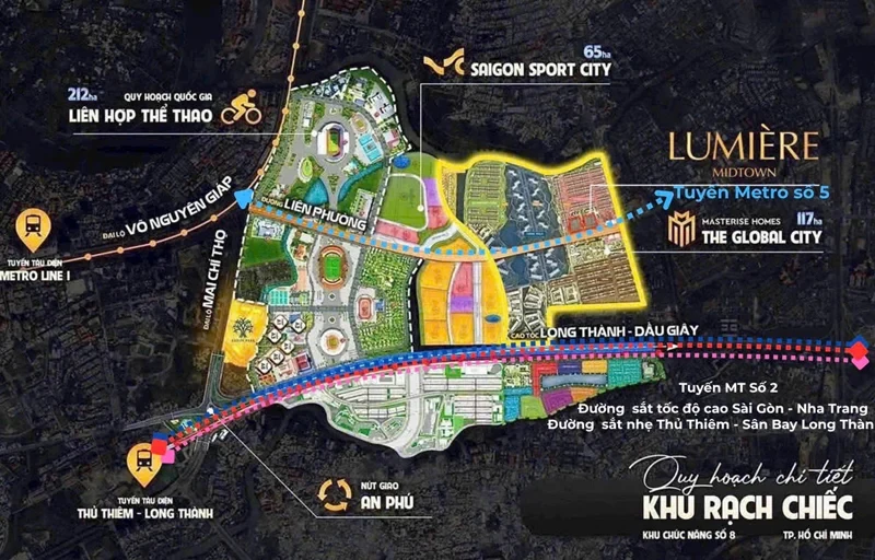 락찌엣(Rạch Chiếc) 국가 종합 체육·스포츠 단지는 1994년 처음 계획됐으나, 투자 재원 부족과 제도·정책상의 한계로 인해 30년이 넘도록 실제로 추진되지 못했다. 해당 프로젝트는 도시 동부 관문에 위치해 있으며, 마이찌토(Mai Chí Thọ) 대로, 하노이 고속도로(현 보응우옌잡 대로), 호찌민시–롱탄–저우저이 고속도로 등 주요 교통 축과 인접해 있다.