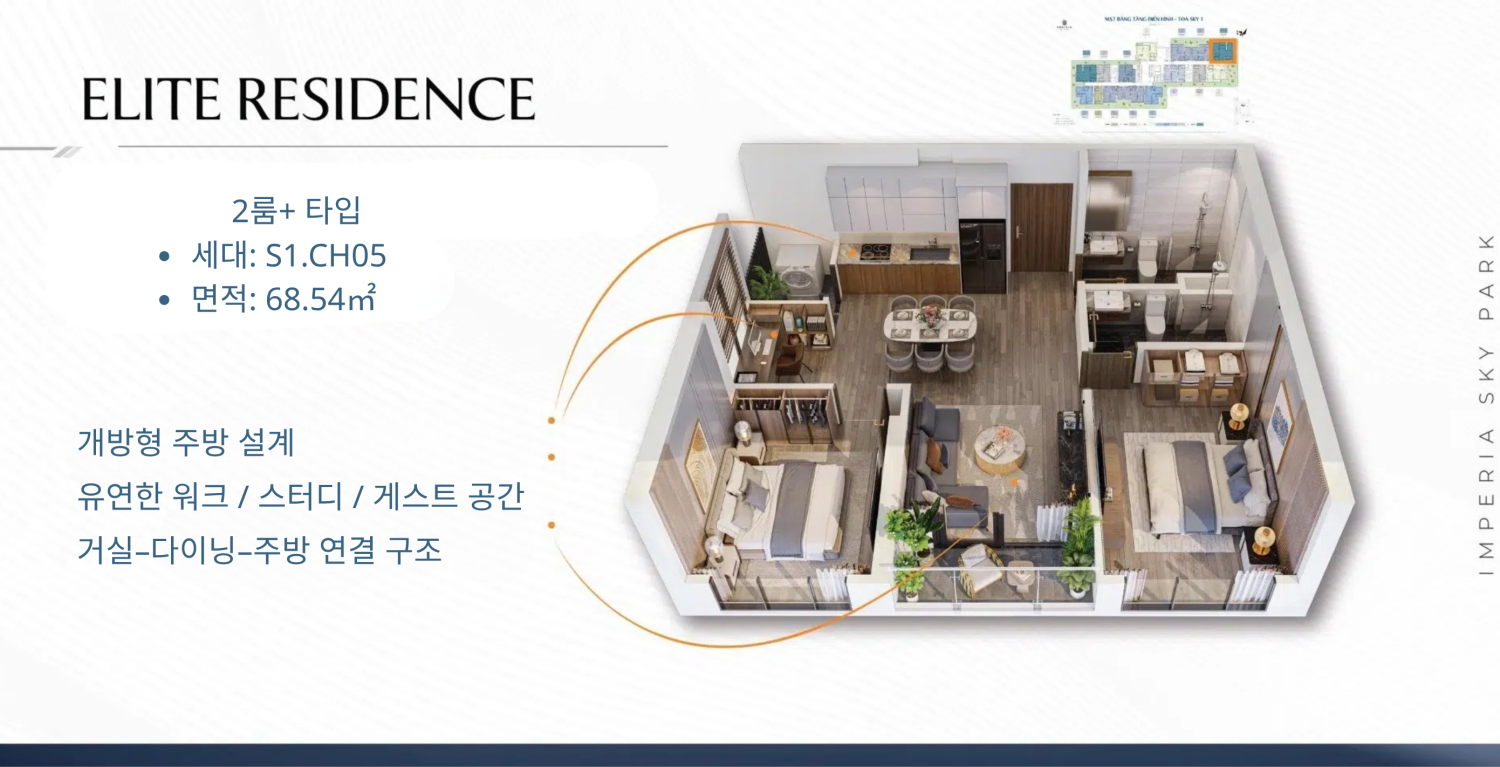 최근 하노이 서부 지역은 고급 아파트 공급이 제한적인 상황이 지속되고 있어 희소성이 점점 높아지고 있는 시장이다. 이러한 공급 부족 속에서 Imperia Sky Park는 신규 프리미엄 단지로서 높은 관심을 받고 있는 프로젝트이다.