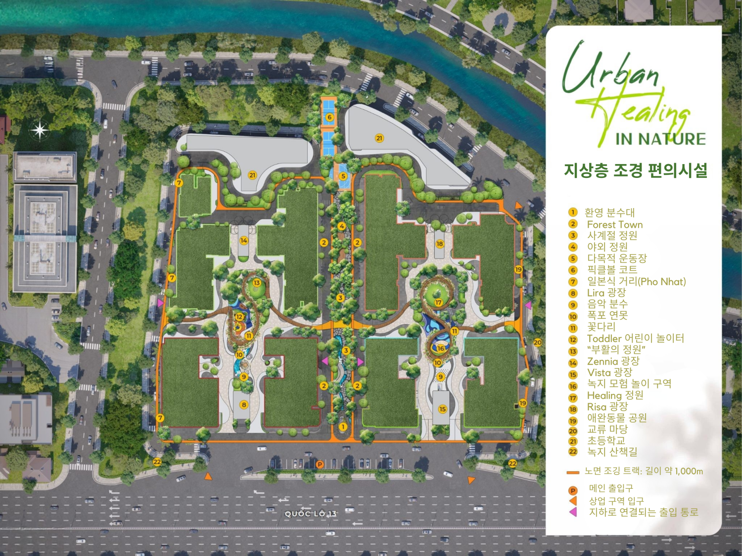 학교, Aeon Mall, Lotte Mart, MM Mega Market, Becamex 국제병원, 송베 골프장, VSIP1 산업단지 등이 위치해 있다.