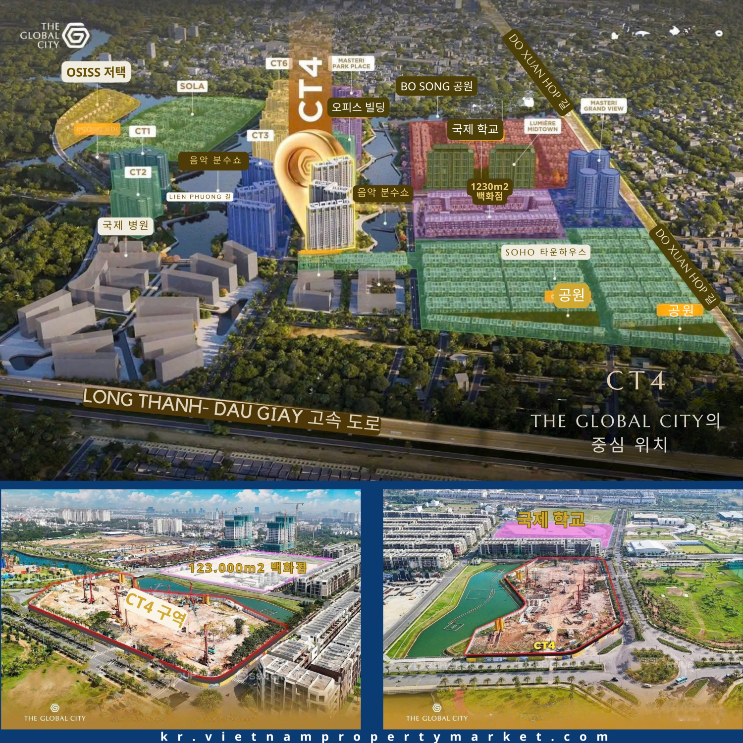 The Global City의 중심 입지를 기반으로 탁월한 연결성을 갖추고 있으며, 주요 생활 편의시설을 단 1~5분 내에 모두 누릴 수 있다. 동남아시아 최대 규모의 음악 분수 수로이자 사이공의 대표적인 로맨틱 랜드마크, 123,000㎡ 규모의 대형 쇼핑몰, 그리고 동부 지역을 대표하는 쇼핑·미식 브랜드가 집약된 SOHO 타운하우스 단지가 인접해 있다.