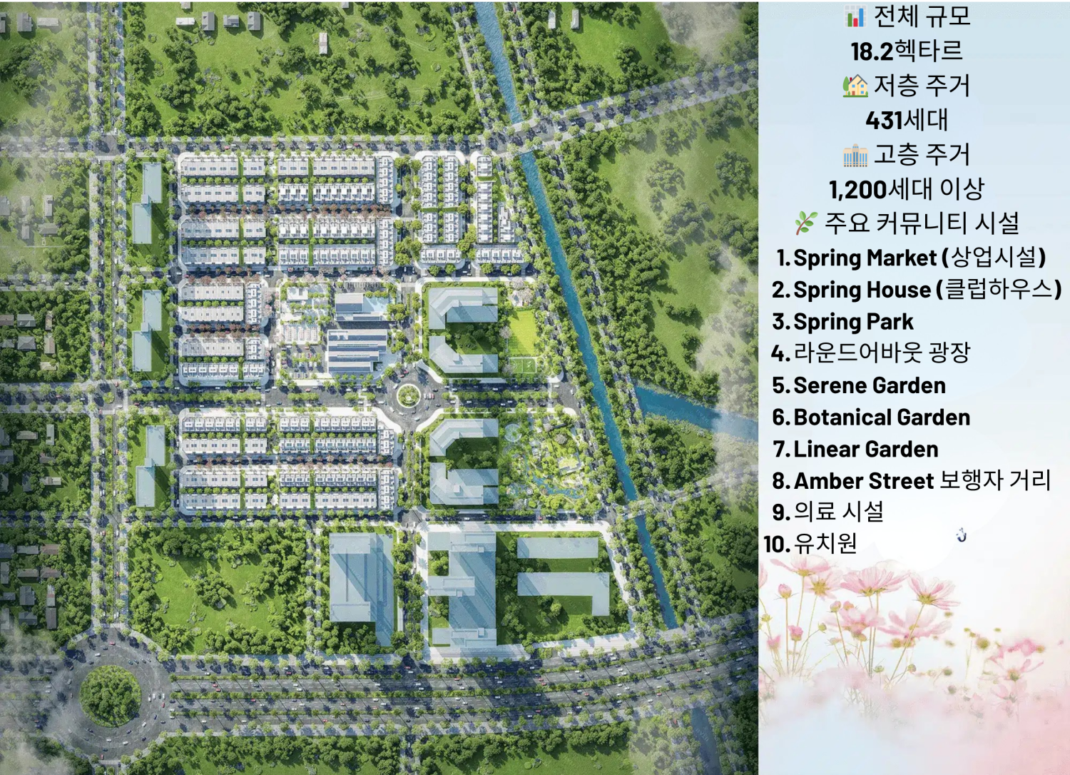 Spring Ville의 입지는 Gamuda Land의 전략적 안목을 보여주는 대표적인 사례로, 동남부 지역 내 가장 높은 성장 잠재력을 가진 년짝에 위치한 것이 특징이다. 현대적인 교통 인프라, 활발한 산업 환경, 체계적인 도시 계획이 결합되어 투자 가치가 뛰어난 입지를 형성한다. 또한 롱탄 국제공항 약 9km, 호치민 중심 약 15km, 철도역 약 0.8km 거리로 뛰어난 연결성을 갖추고 있으며, 교통·환경·생활 인프라·미래 가치까지 모두 갖춘 현대형 도시로 평가된다. Spring Ville은 향후 가치 상승이 기대되는 지역에 선제적으로 투자할 수 있는 기회로, 장기적인 관점에서 매우 유망한 투자 선택지다.