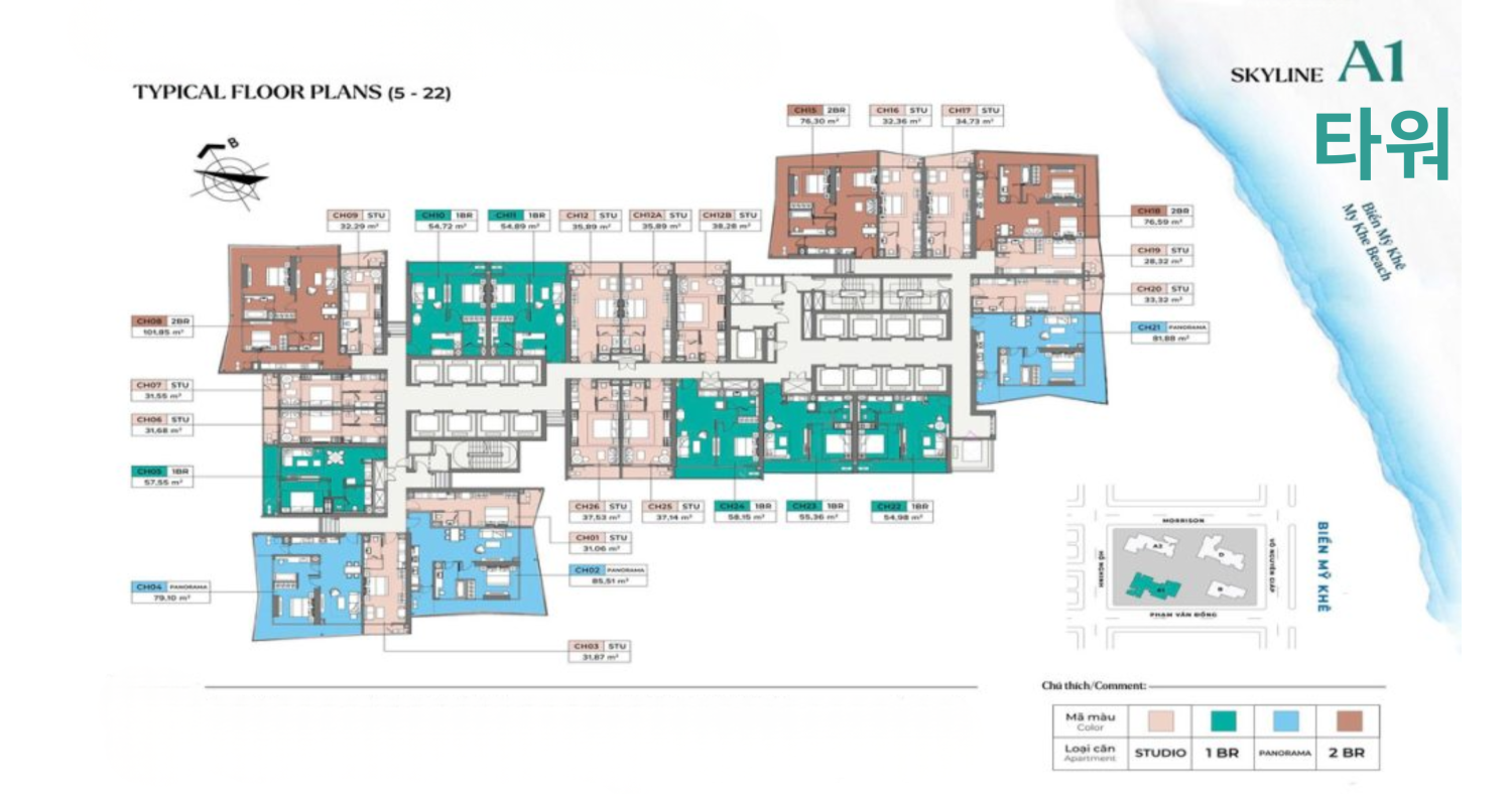 특히 Forbes가 선정한 세계 6대 아름다운 해변 중 하나인 미케 해변 바로 맞은편에 자리해, 탁 트인 오션뷰를 확보한 ‘다이아몬드 입지’를 갖춘다.
