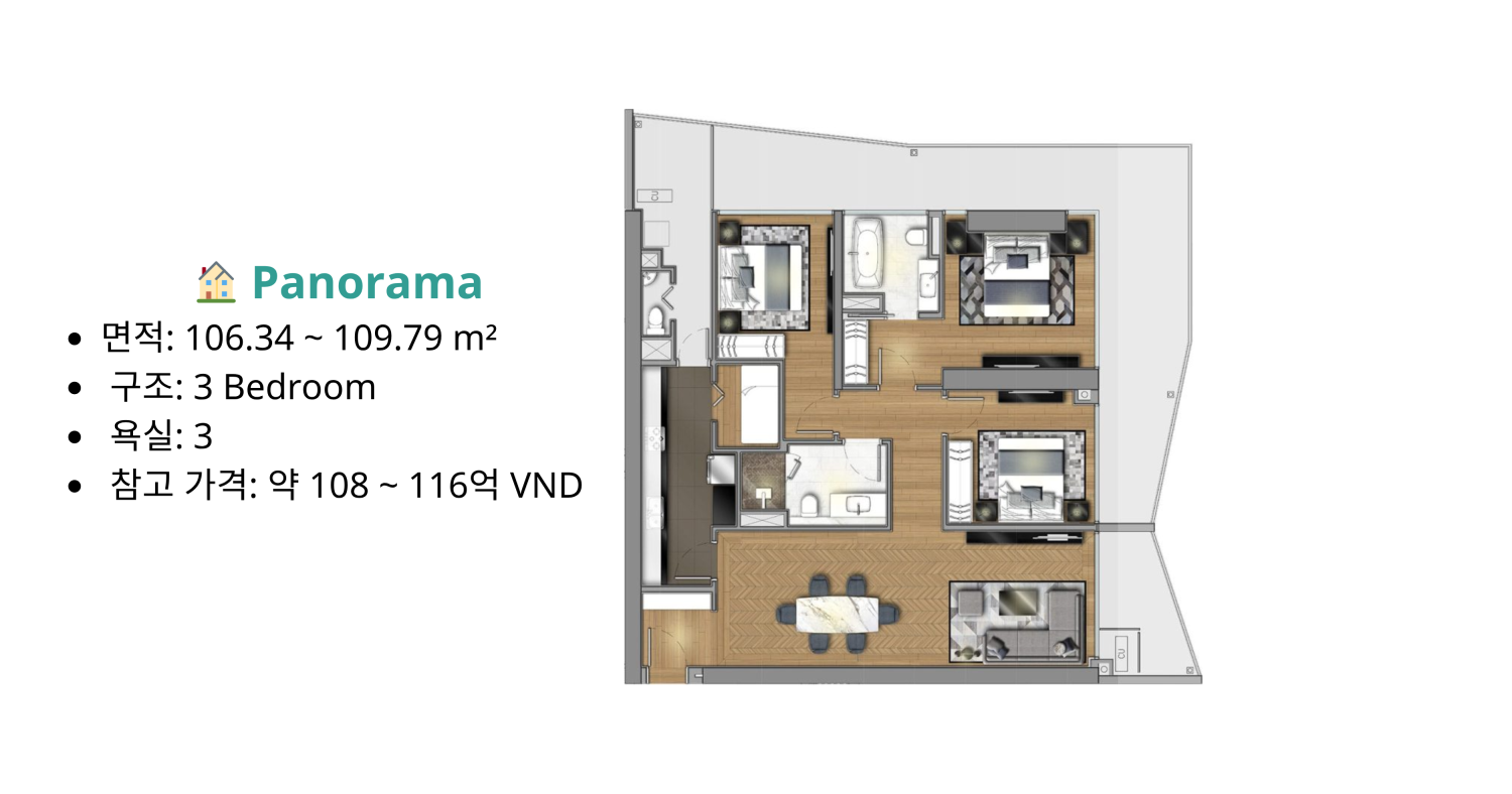 랜드마크 상징성 – 최고층 프리미엄 최고 57층 규모의 해변 초고층 복합단지로, 다낭을 대표하는 상징성과 높은 관광 수요를 동시에 확보한다.