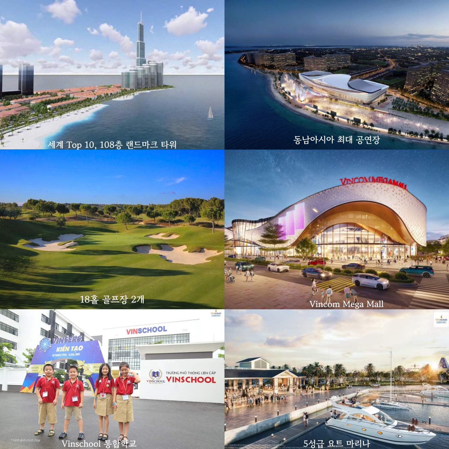 • 가족 친화형 도시로, 부모는 안심하고 아이들은 건강하게 성장하는 곳이다. • 빈스쿨(Vinschool) 97개교가 유치원부터 고등학교까지 완비되어 있으며, 아이들은 도보 5~10분 내에 통학할 수 있다. • 빈멕(Vinmec) 과 미국 1위 병원 클리블랜드 클리닉(Cleveland Clinic) 이 협력하여, 세계 수준의 의료 서비스를 해외의 60% 비용으로 제공한다. • 71,200명의 거주민이 어우러진 활기찬 ‘미니 시티’로, 국제 수준의 상업·문화 서비스가 24시간 운영된다. • 풍부한 녹지와 공원으로 인해 기온이 5~7°C 낮고, 공기가 청정하며 커뮤니티의 유대감이 강하다.