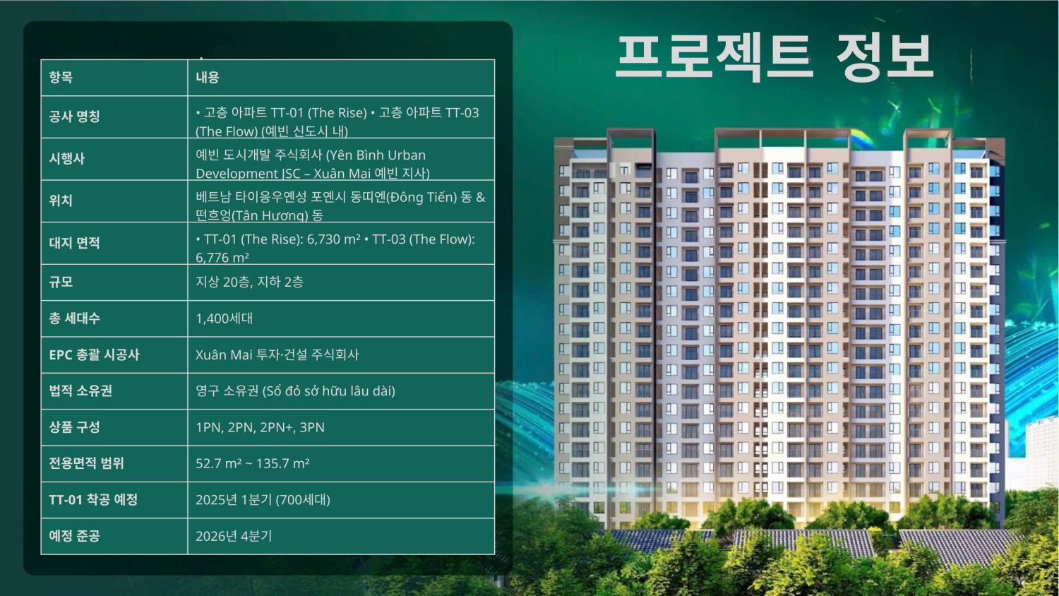 또한 예빈 1·2 산업단지와 디엠트웨이(Điềm Thụy) 산업단지 등 주요 생산 거점과 인접해 있어, 이 프로젝트는 빠르게 성장하는 산업 네트워크의 중심지로 자리매김한다.