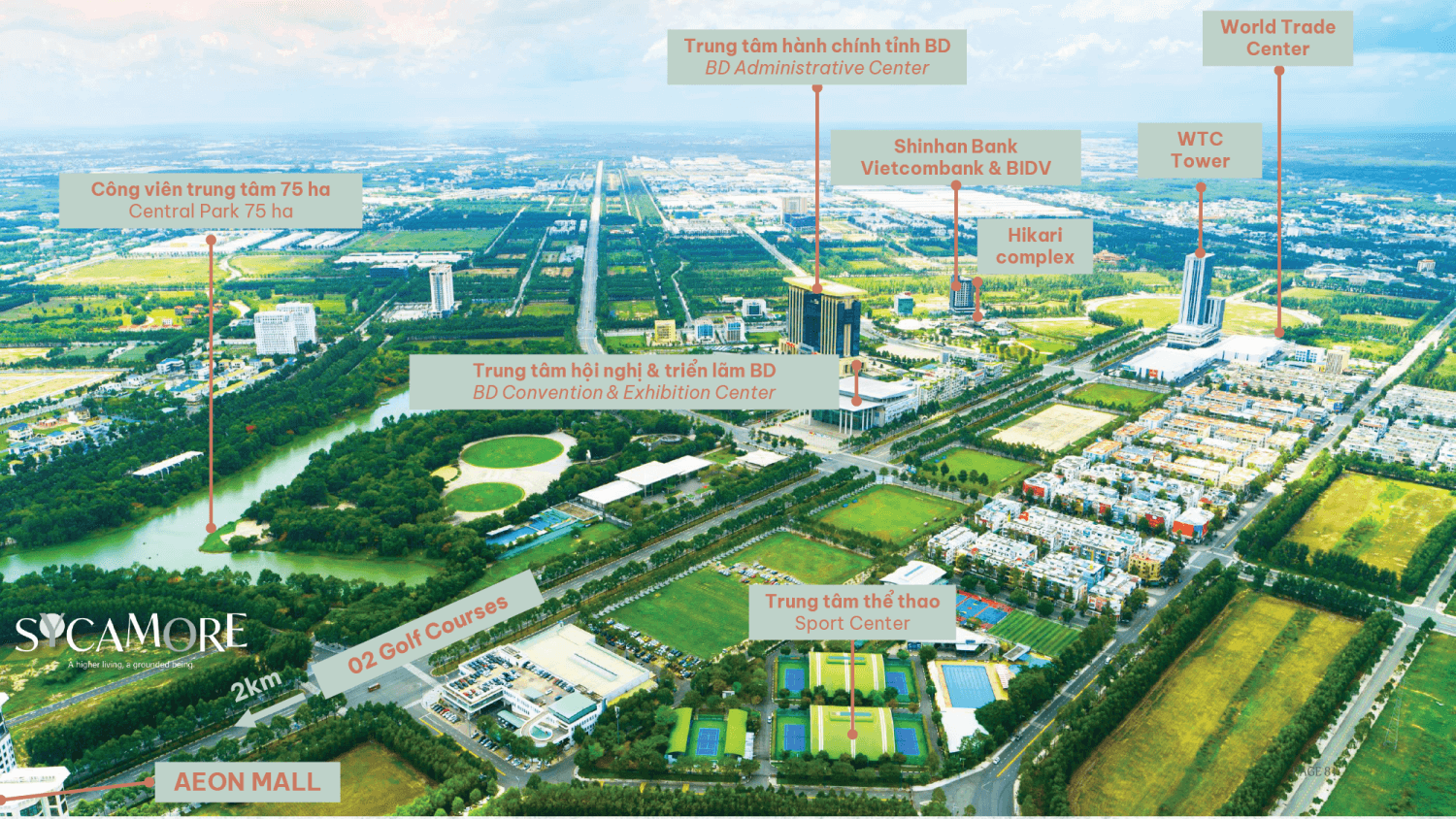 Sycamore는 빈즈엉 신도시의 핵심 주거 지역을 대표하는 프리미엄 현대 주거단지로 자리매김하고 있습니다.