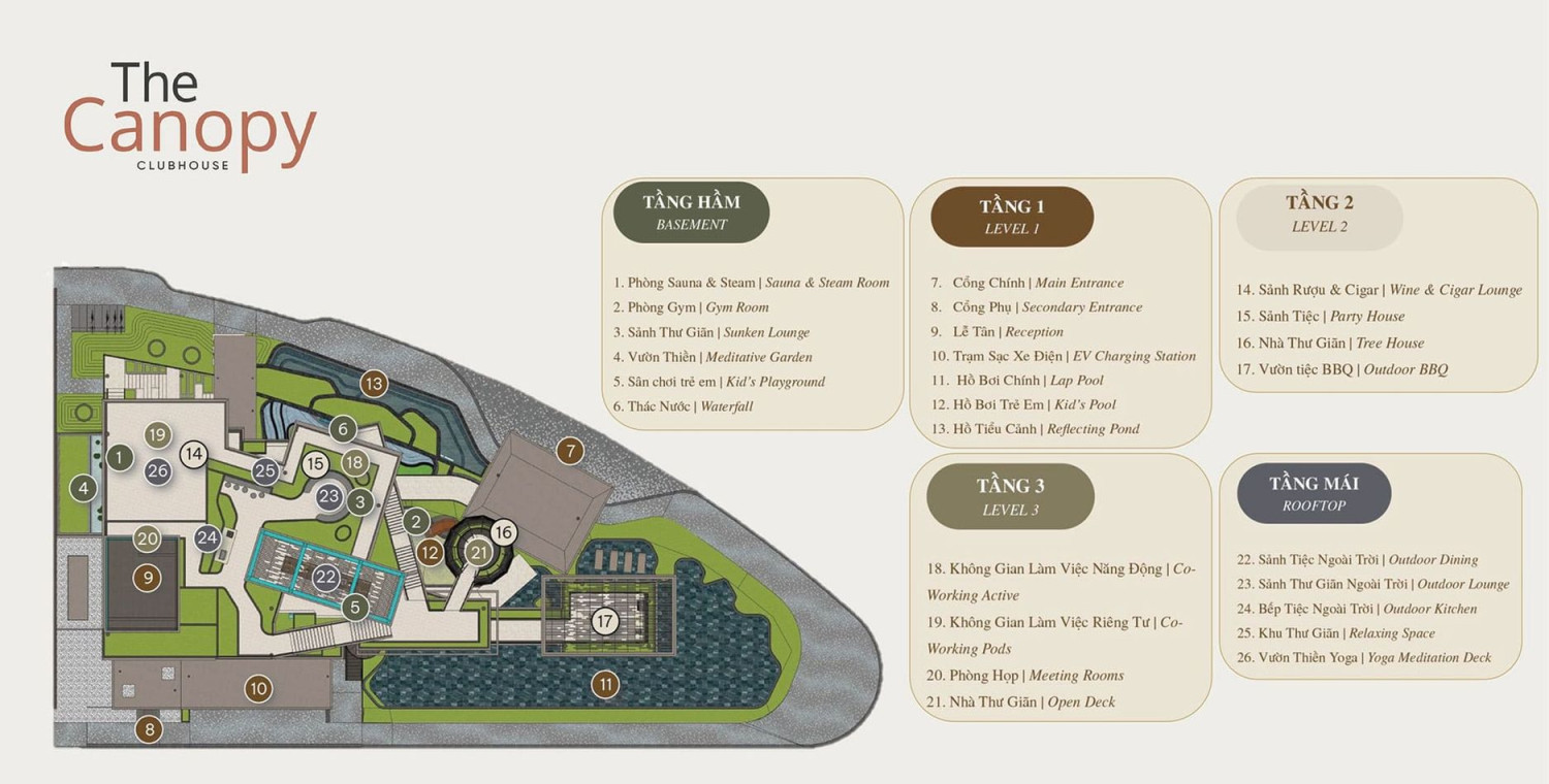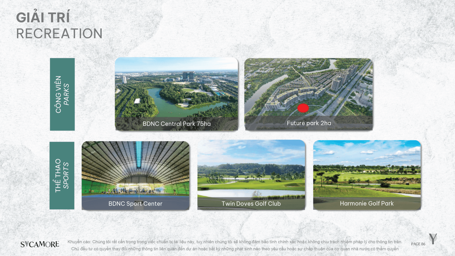 Sycamore 빈즈엉은 총 18.9헥타르의 대규모 부지로 구성되며, 다양한 라이프스타일을 위해 7개의 세부 구역으로 나누어 설계되었습니다.