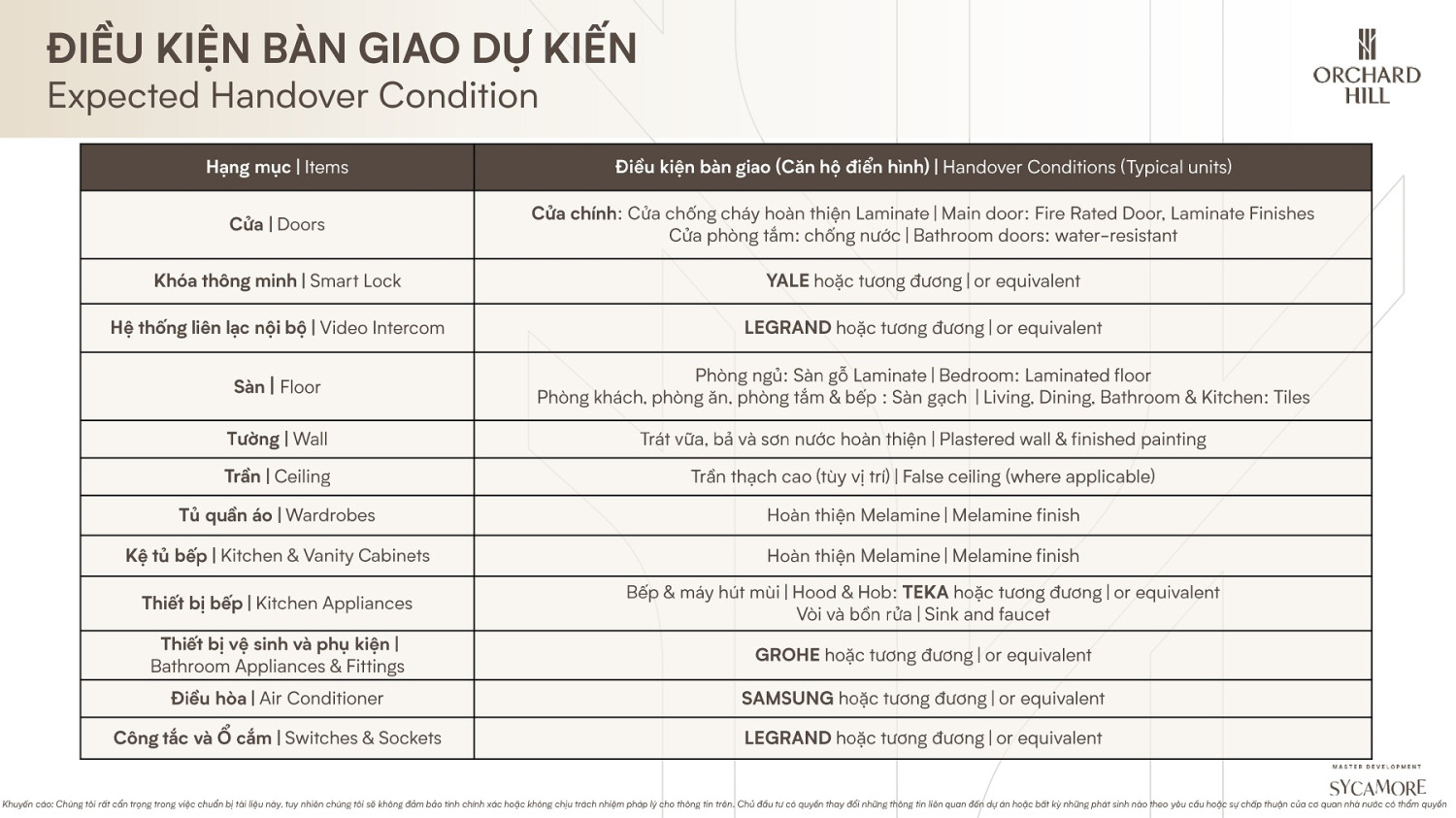 가격 및 결제 방식 – Sycamore Capitaland 빈즈엉